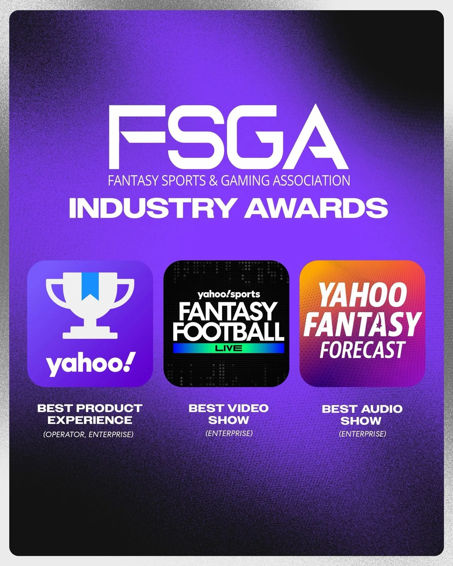 View fullsize Fantasy Sports & Gaming Association’s @officialfsga 2026 industry awards named… 3 wins for @yahoosports: best video show, best audio show, best product 💪👏